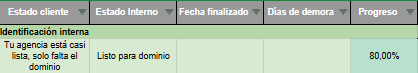 Una vez que la agencia informó al ejecutivo que el dominio ya se encuentra correctamente redireccionado a la IP de la plataforma, el ejecutivo comercial debe marcar la columna “Dominio conectado” en el Drive de gestión.