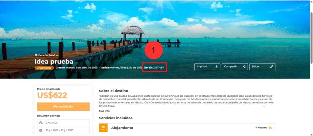 - Título del paquete (ej: Cancún Relax).