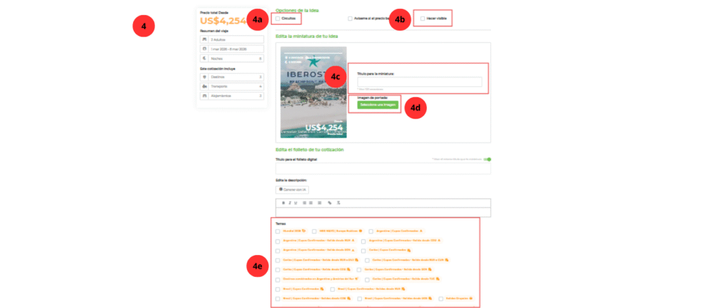 - Crear paquetes propios (Holiday Packages) que aparecerán publicados en tu web para tus clientes.