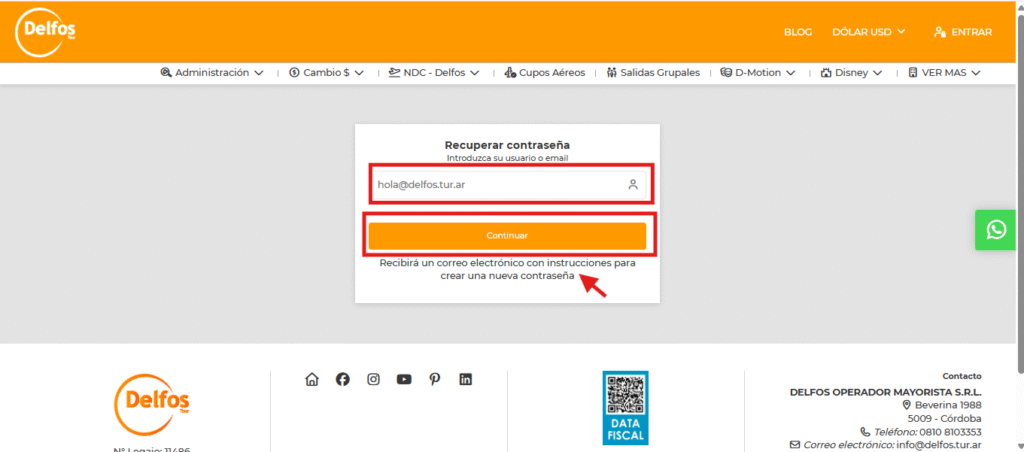 - Si aún así no lo recibís, comunicate con tu Ejecutivo Comercial de Delfos para que lo revise y gestione el restablecimiento.