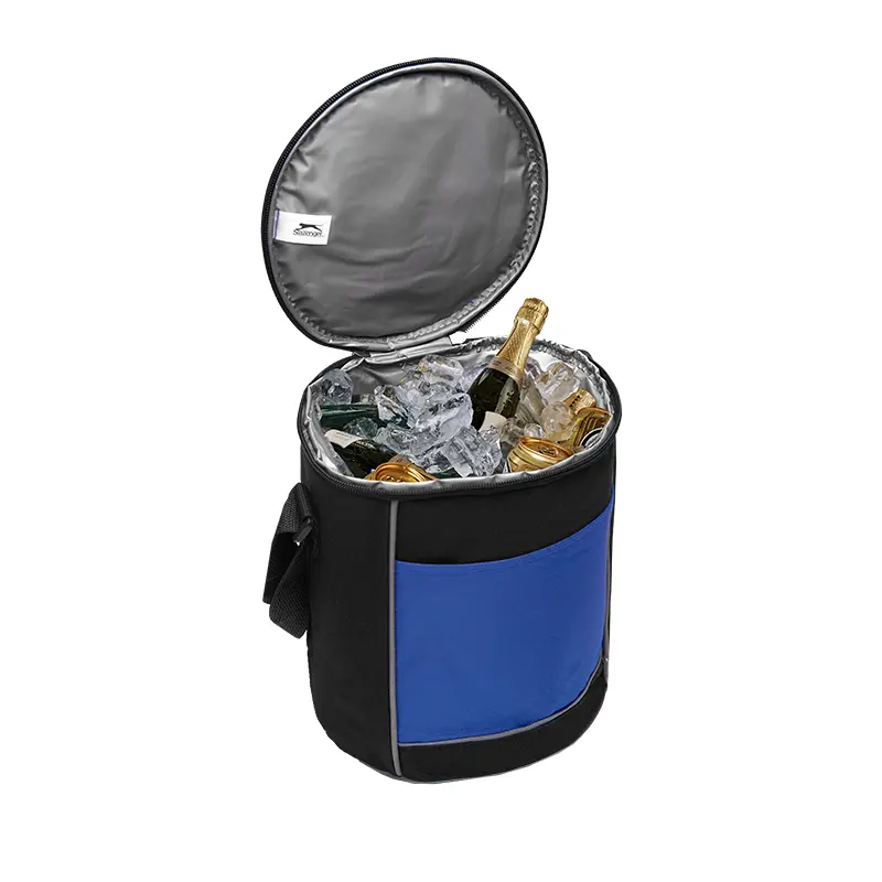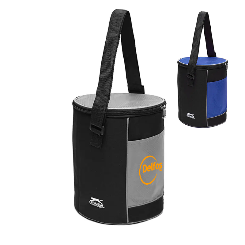 El Cooler Polar (Slazenger) ofrece un equilibrio entre estética y funcionalidad para uso corporativo y de agencia. Está fabricado en 600D y PVC; interior PEVA; bolsillo ripstop.